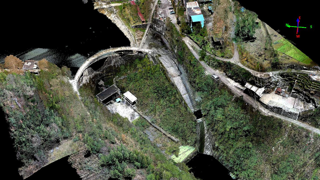 - 生产效率远超传统测绘方式,大坝周边区域,客户派出一个3人小组,使用架站式扫描仪测了2天,而使用mdLiDAR3000仅用1个架次15分钟即完成了。