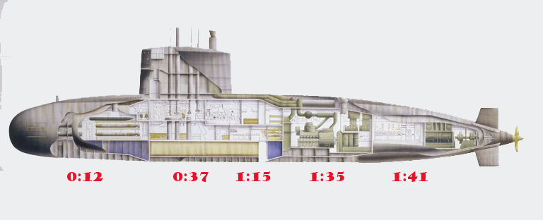 视频里展示了一个潜艇可以是多么的舒适,到了工程部分,幽闭恐惧症患者可能会尖叫。