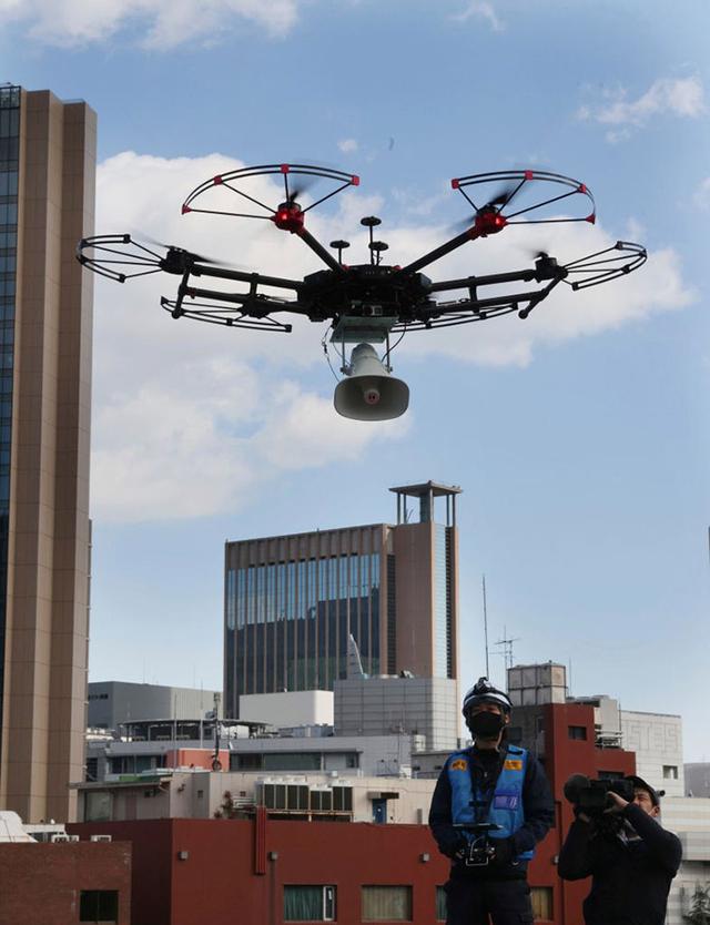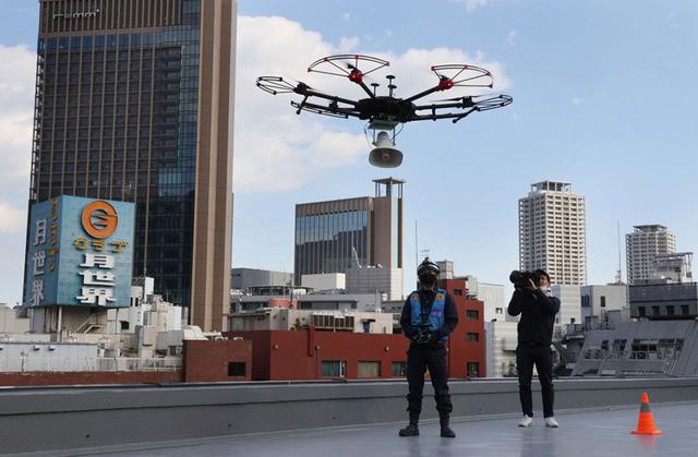 1月30日,日本兵库县神户市,新冠肺炎疫情蔓延,当地政府出动无人机提醒市民避免不必要和非紧急的出行。