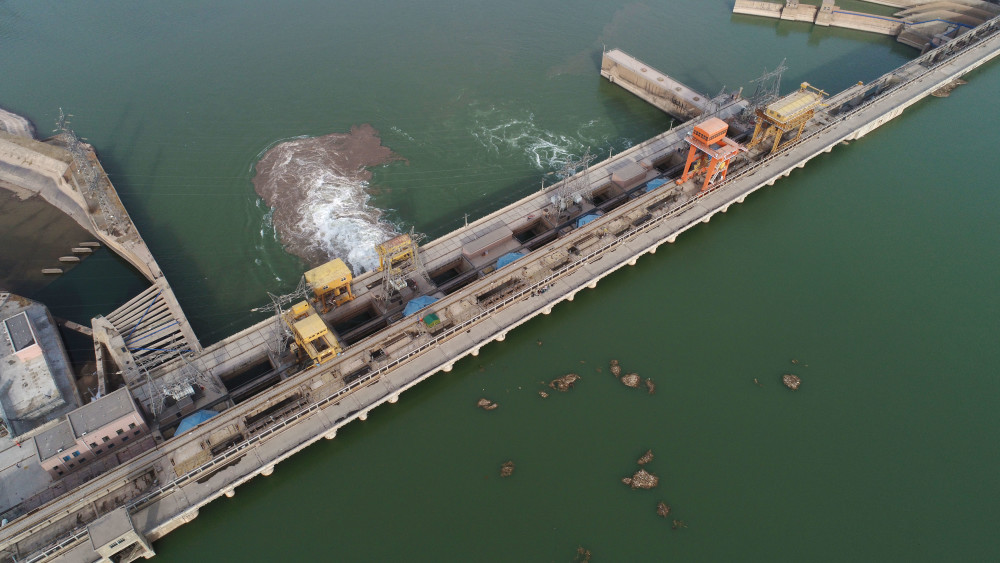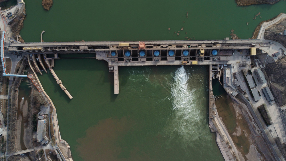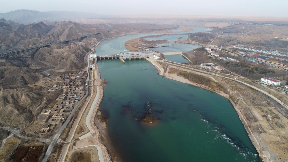 黄河流经宁夏青铜峡市青铜峡水利枢纽工程