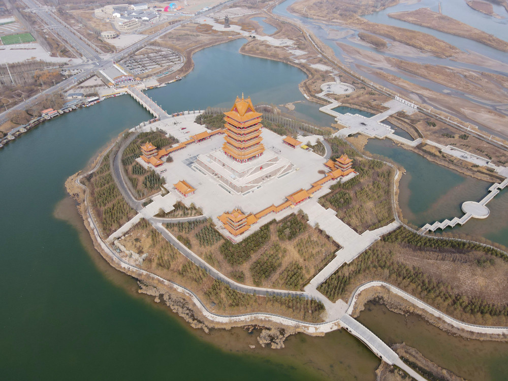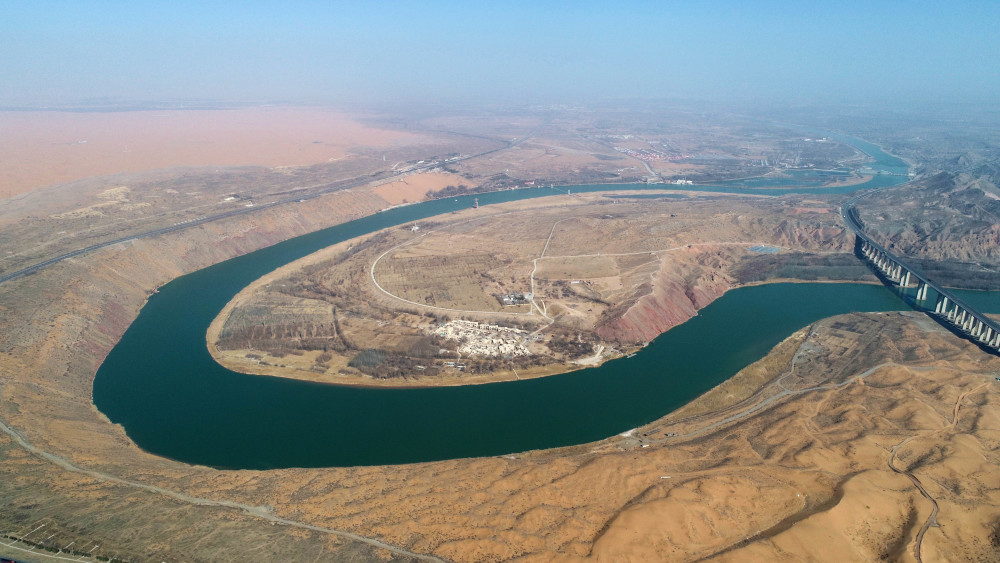 黄河流经宁夏中卫市沙坡头水利枢纽工程