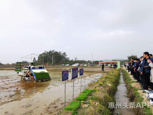 3月10日上午,在惠城区横沥镇,2021年惠州市(惠城区)春季农业生产现场会暨水稻机械化生产现场观摩演示会举办,现场集中展示了水稻种植新品种、新技术、新机械,各种黑科技精准渗透到田间地头,为我市春耕备耕注入科技能量,为实现夏粮丰收、保障粮食安全提供坚强的科技支撑。