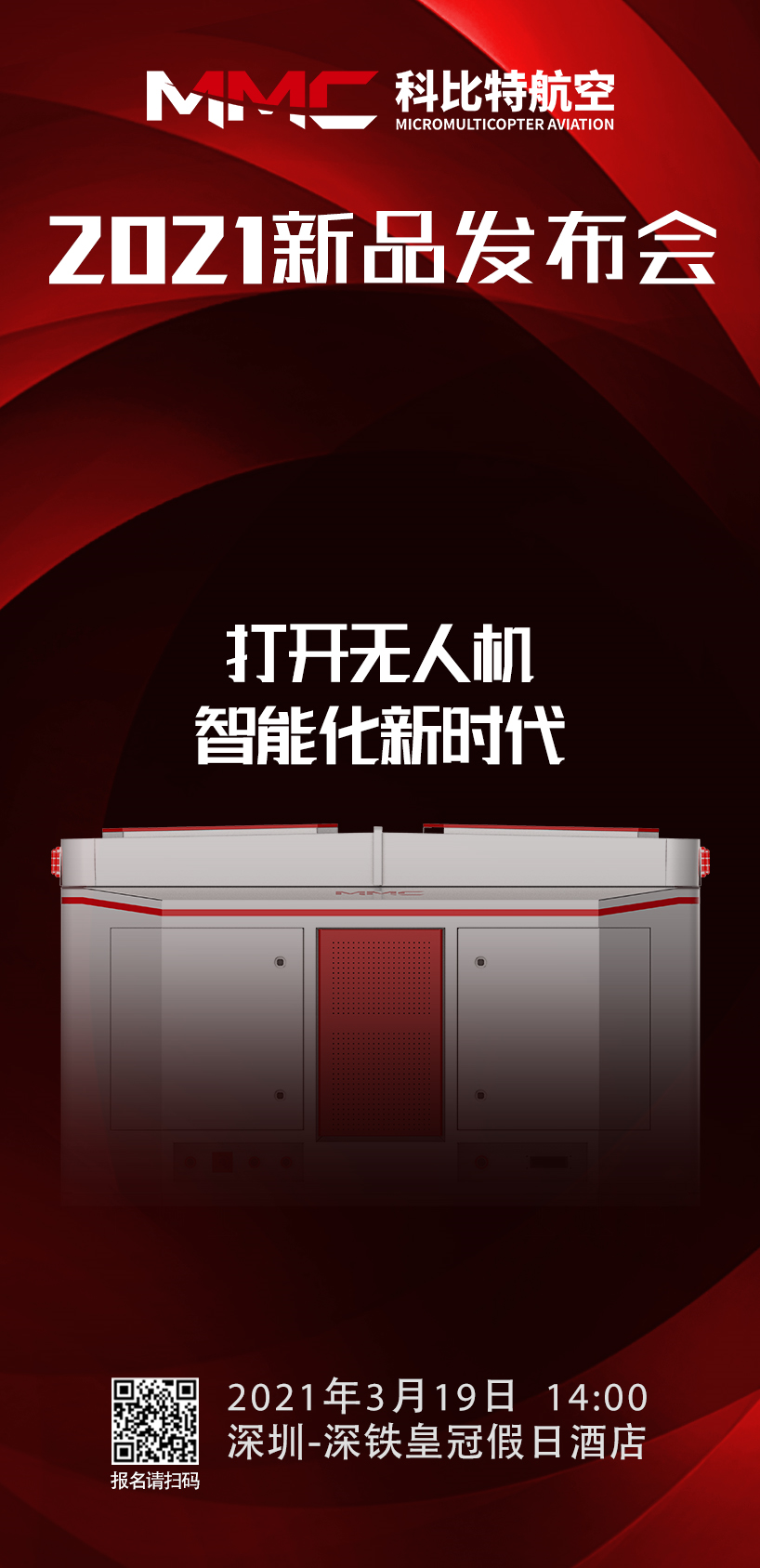 本次新品发布会面向全行业的合作伙伴,线下发布会将在深铁皇冠假日酒店举行,同时也会在线上进行全程直播。科比特航空诚邀您的参加,一同见证我们的诚意之作,可通过扫描下方二维码报名或点击阅读原文进行报名。