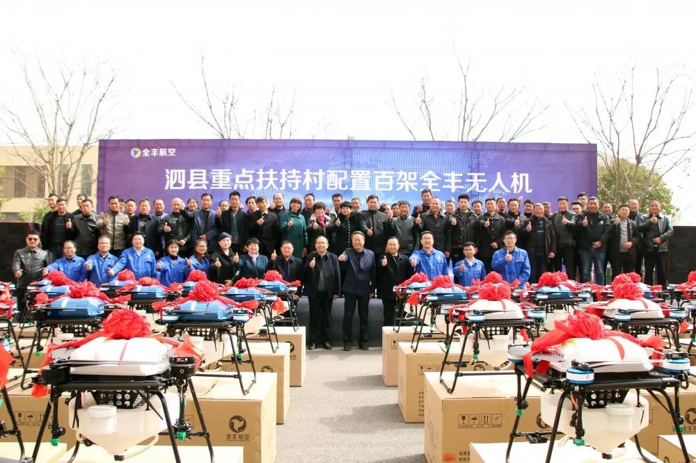 此次,全丰航空在泗县34个重点扶持村配置68架全丰无人机的基础上自愿免费再赠送68架来支持重点扶持村的农业生产和村集体的创富能力,我们知道在新的时代背景下,农作物生产全程机械化已成为大势所需,发展各种形式的适度规模经营、培育新型农业经营主体,智能化的高科技装备将是最迫切的需求,安徽全丰航空做为泗县招商引资企业,我们始终不忘初心,为促进泗县农业高质量发展和壮大村集体经济,带动农户增收致富和推动全县农业装备机械化、现代化、智能化、信息化做出新的、更大贡献。
