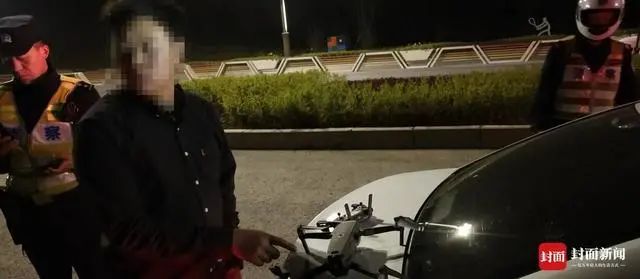 看到眼前的夜景很美,四川理县男子徐某产生了一个想法,他将无人机放飞到天空,但此时,他被正在巡逻的交警逮个正着。3月17日,记者从成都东部新区公安分局了解到,近期,东部新区公安分局交巡警在辖区三岔街道公园大道发现一人违规使用无人驾驶航空器,之后,三岔派出所民警迅速到达现场。