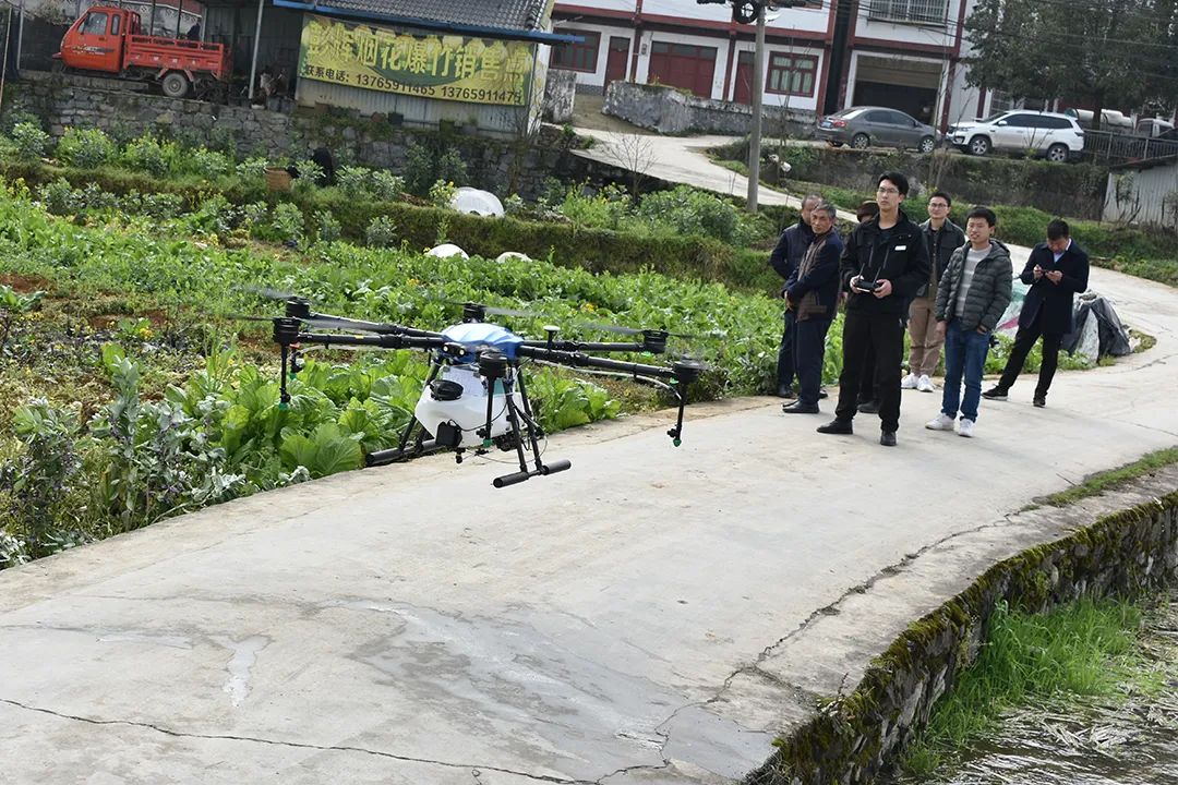 卓豪农业作为鼎峰无限在贵州的战略合作伙伴,携鼎峰公司最新的D系列、T系列产品亮相推介会,并现场试飞,鼎峰植保无人机以科技质感的外观、26升的高容量配置、简洁易上手的可操作方式,引起广泛关注,成为现场的焦点科创展品。