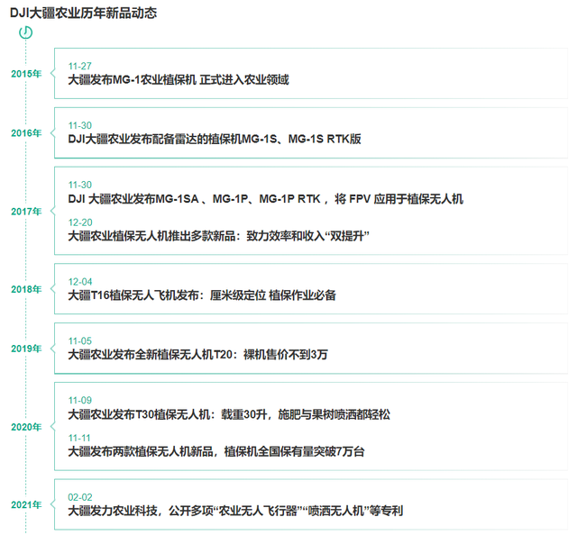 DJI大疆创新成立于2006年,如今已发展成为空间智能时代的技术、影像和教育方案引领者。DJI大疆创新将全球卓越的无人机技术应用于农业领域始于2012年,并于2015年创立了DJI大疆农业。2016年3月,其依托5.3万元农业植保机开售和一套被称为“破局”计划的2016年农业市场战略,正式进入农业植保市场。