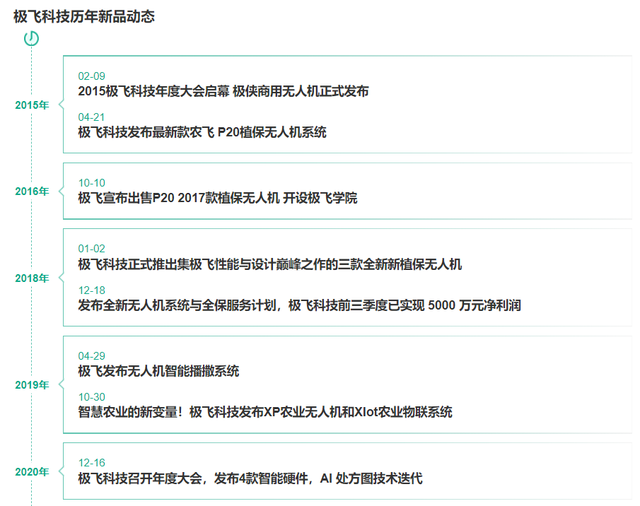 从2015年2月年度大会启幕,极侠商用无人机正式发布,到2020年12月召开年度大会,发布4款智能硬件,极飞科技在农业无人机领域走过了数个春秋,也打造了一个又一个创新产品。
