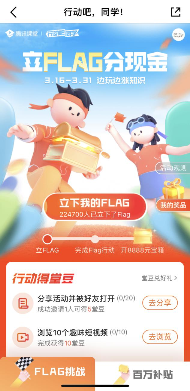 除了与知名品牌与机构合作课程外,腾讯课堂还在近期推出了诸多新鲜玩法,激发学员学习兴趣,提供更丰富的求知体验。3月16日-31日,腾讯课堂打造大全民许愿池,开启“立Flag分百万现金”活动,通过百万现金奖励、千万在架定制课程助力用户实现Flag,收获自身的成长和提升。值得一提的是,腾讯课堂新推出的“轻内容”方案,聚焦于进一步搭建内容平台,以更轻量级、更轻松化、更轻易获取的知识占领用户心智,满足用户多元的学习需求。
