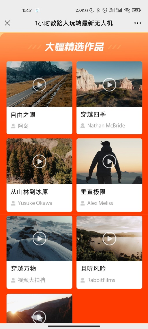 本次大疆X腾讯课堂直播是大疆入驻腾讯课堂后的亮相。3月20日,大疆宣布入驻腾讯课堂,官方账号正式投入运营,将陆续为粉丝和用户们带来无人机飞行教学、实飞经验分享、行业新动态和粉丝作品展示等优质内容。通过与大疆的合作,腾讯课堂力图为无人机飞行爱好者搭建一个更轻松、更便捷的学习平台,在帮助新手小白入门的同时,也帮助头号玩家掌握更高阶的飞行技巧,助力学员们在腾讯课堂了解更多无人机飞行知识,看见更为广阔的天地。