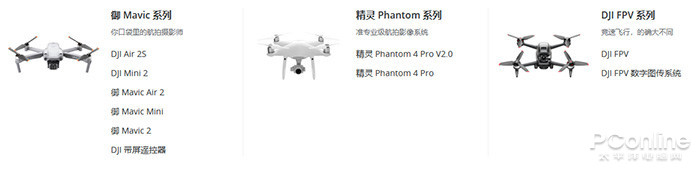 其实大疆的消费级无人机能选择的并不多,目前为止也就只有三个系列,它们是Mavic/Phantom/FPV。