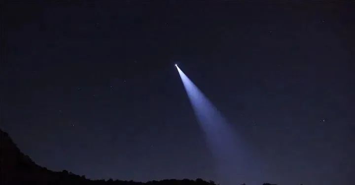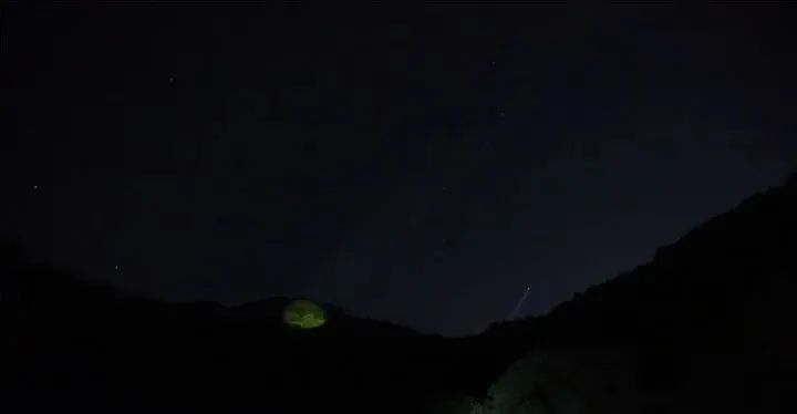 多架热成像无人机在白龙潭景区附近山林上空搜寻第三只金钱豹,并利用自带探照灯打亮搜寻区域。