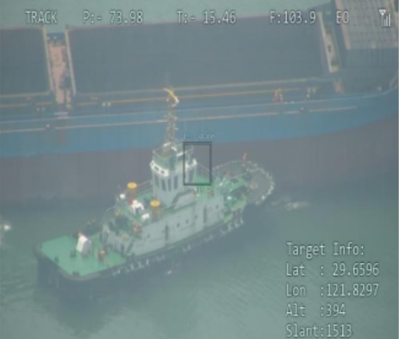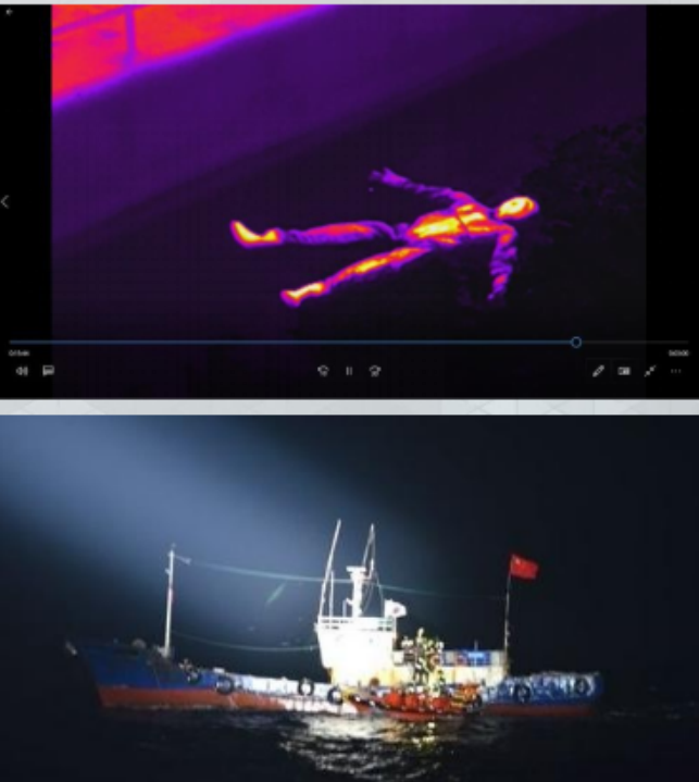 夜间可用热成像来进行水域巡查工作,根据显示可有效确认船只与人,下图为夜间进行人员落水热成像测试,时间为50分钟,整个测试过热红外成像清晰。无人机也可搭载探照灯,作为空中补充光源,给执法现场提供更多便利。