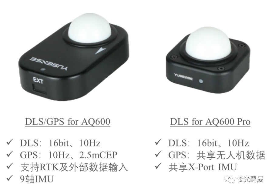 AQ系列多光谱相机标配下行光传感器(DLS),其中AQ600版DLS内置高精度GPS和IMU模块,AQ600 Pro则共享无人机的GPS和IMU信息。