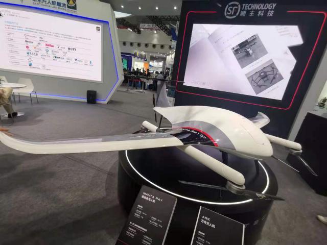 在展会现场,记者就发现了不少无人机"神器"。从深圳运输一批快递到珠海,顺丰陆运发货最快可 3 小时候送达珠海,那么用无人机送快递效率又是如何?答案是大约 40 分钟。现场,顺丰科技展出了一款名为"魔鬼鱼"的物流无人机。该款无人机为中远距离货运机型,最大航程达 100km,巡航速度为 26m/s,载荷重量为 5kg。别看它体型不大,但作用不小,据工作人员介绍,该款无人机可以运送文件、发票等重要资料以及珠宝首饰等轻巧的贵重物品,既安全又方便快捷。"相对于以前几小时的车程距离,这款无人机几十分钟就能送达,还能跨海送快递,快递配送效率更高。"工作人员介绍到。