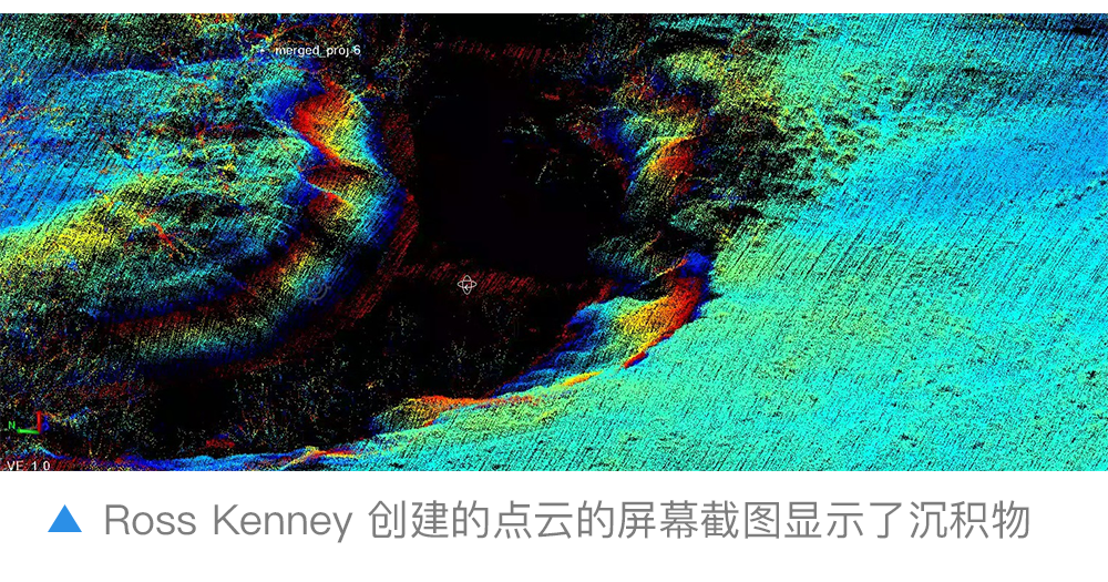 在完成1800英亩测区的测量和数据处理流程后,Kenney创建了一个完整的表面模型:mdLiDAR1000HR aaS能够提供探测沉积物所需的信息和数据。Kenney指出:“看看溪流两岸的界线多么明显,这里有个蓝色区域,可以看到高度变化,所有沉积物都在此处。”