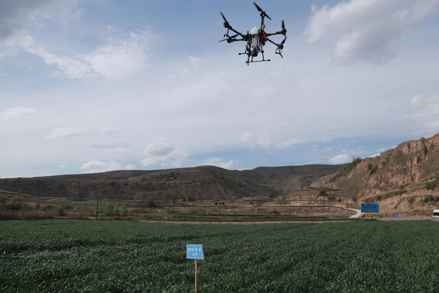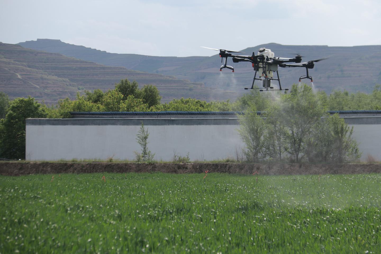 相比传统的人工打药模式,无人机喷洒农药不仅大大提高了工作效率,而且无人机在飞行过程中向下产生的气流能吹动一片片麦苗,使麦苗接受农药喷洒更加均匀,防治效果大幅度提升。