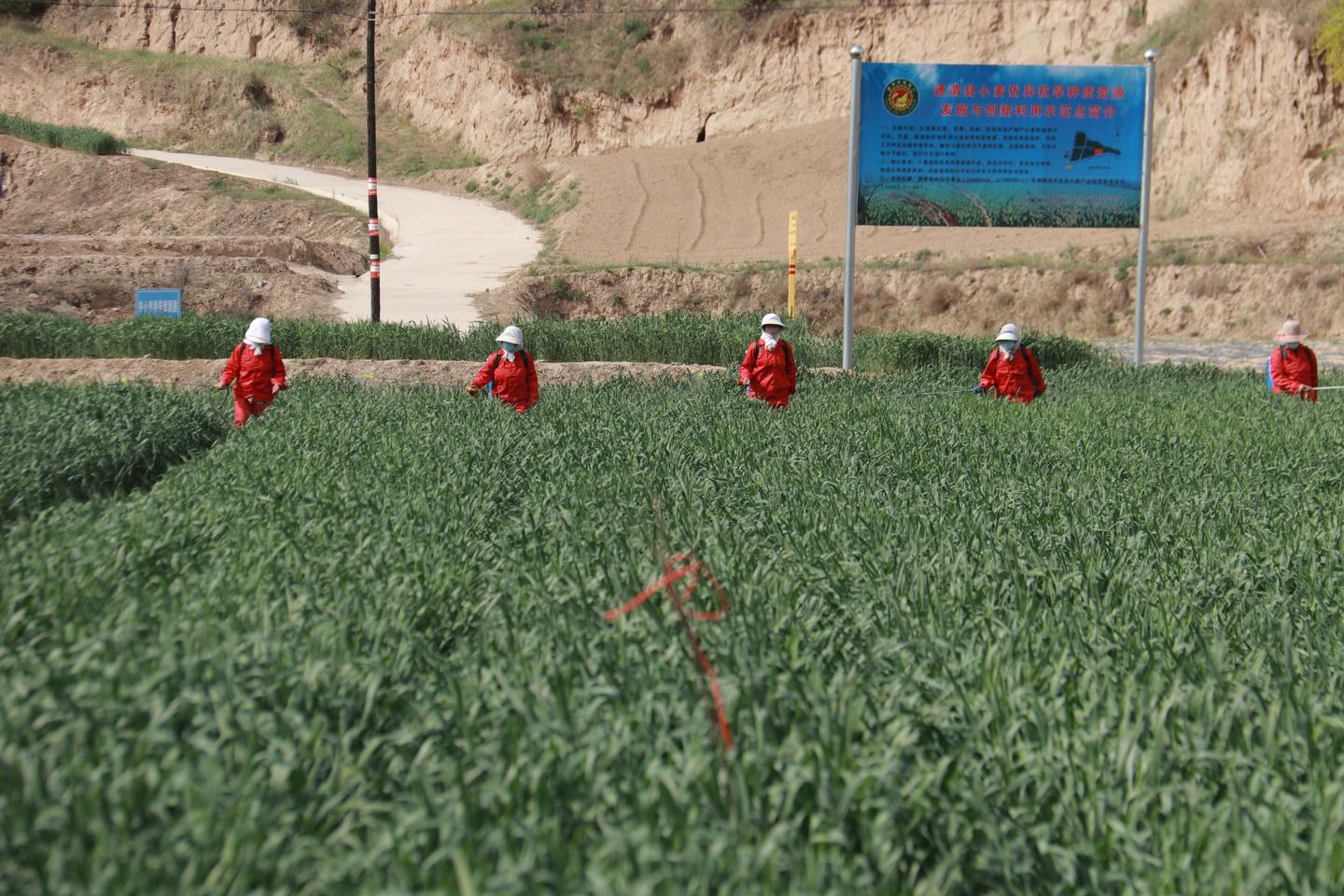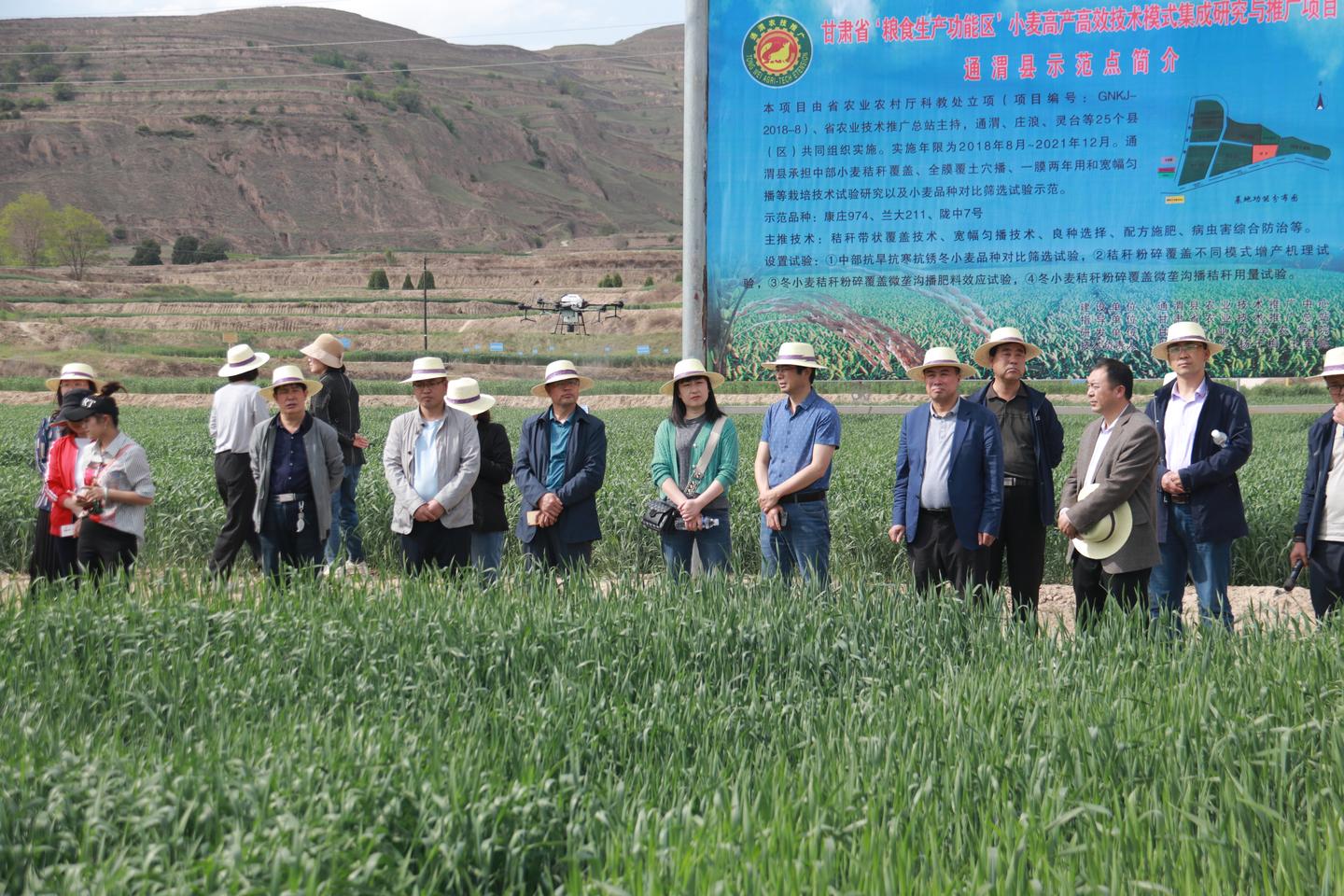 通渭县农技中心植保站站长杨子梅:“草地贪夜蛾和苹果蠹蛾属于监测阶段,暂时县上还没有出现,但是小麦条锈病已经大面积发生了。为了防止小麦条锈病进一步流行和蔓延,全市选通渭作为示范点召开小麦条锈病的统防统治现场会,让专业化组织参与,用现代化高效率的植保机械无人机进行喷防。”