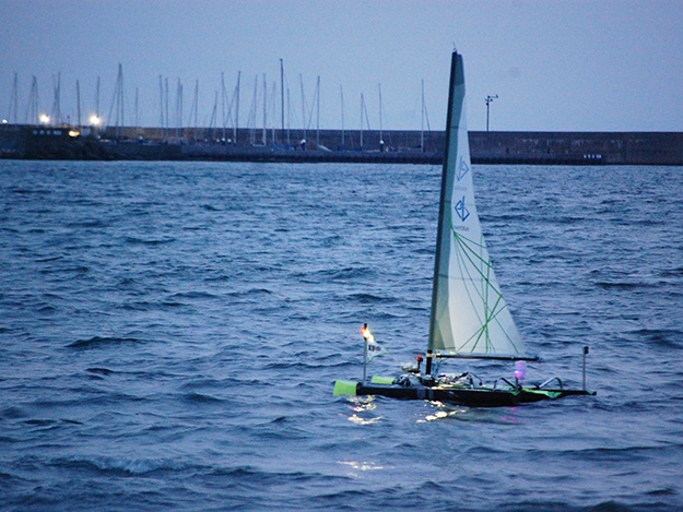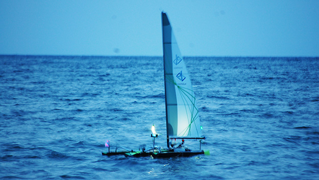 Everblue Technologies通过直接使用风力作为动力的航行自动化技术为实现可持续发展的社会做出贡献,从日落到夜晚在祖师湾使用帆船型无人机“ A型原型”。在连续一小时的夜间航行中作为在2020年开发的2m级无人机(风船型无人机)的演示机,用于演示测试的“ A型原型”已用于长期操作测试,例如可操纵性和停留型测试。