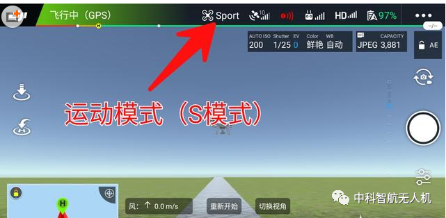 2、运动模式,大疆无人机称“S模式”。在该模式无人机通过GPS模块或下视视觉系统实现精确悬停,相比于GPS模式,该模式下操作无人机时灵敏度更高,速度更快。该模式主要为满足部分熟练飞手体验竞速而设置。不建议新手尝试。