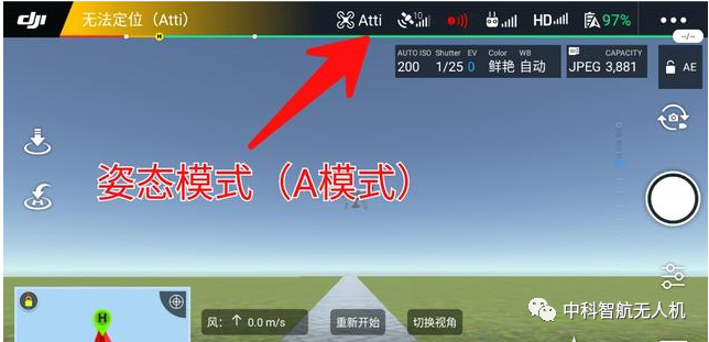 3、姿态模式,大疆称为“A模式”。在该模式下,不使用GPS模块和视觉系统进行定位,无人机仅提供姿态増稳。实际操作中,无人机会明显的出现漂移,无法悬停,需要飞手通过遥控器来不断修正无人机的位置。姿态模式考验的是飞手对于无人机的操控性。在一些紧急情况下,需要切换姿态模式。