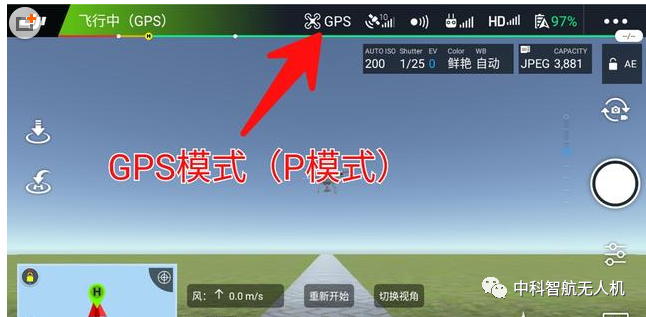 1、GPS模式,大疆无人机称“P模式”。顾名思义,就是无人机使用GPS模块或多方位视觉系统实现精确悬停,指点飞行、规划航线等都需要在该模式下进行。