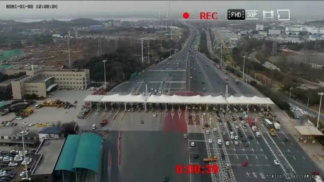 2021年初,蜂巢航宇多旋翼智能无人机场在南京长江第二大桥收费站等路段部署,自主起降,按规划路线自动执行巡检任务,快速、高效、全面地展开路面巡察工作,协助交通管理部门开展春运期间工作。南京市公安局交通管理局大数据指挥服务中心,各高速路段的监控画面实时回传至大厅显示屏中,各路口、收费站等车流量及交通状况一目了然。