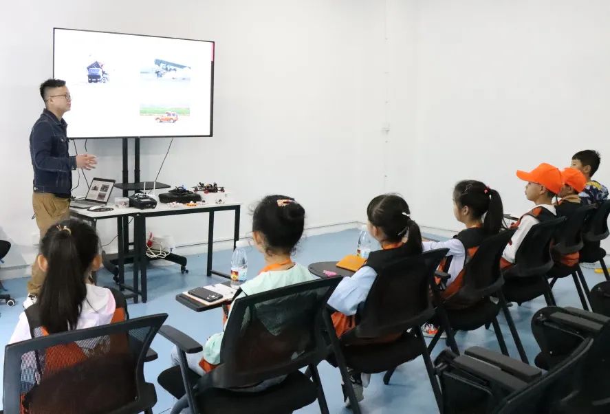 首先,讲解老师带领小记者们进行了无人机飞行器知识讲座学习。老师通过文字、图片专业讲解了无人机飞行器科普知识,详细介绍了无人机作为高科技领域的应用和发展。小记者们一个个的都带着问题专注听讲,认真笔记,对无人机有了初步的了解和认识。