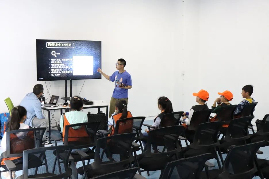 然后,老师向小记者专业讲解了穿越机安全飞行守则并向小记者展示了室内穿越机专业的飞行动作。精彩的表演和全新的视觉体验,让小记者们一口一个赞叹。