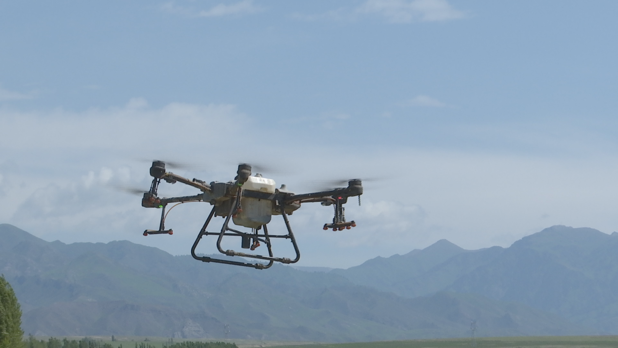 尼勒克县加哈乌拉斯台乡套乌拉斯台村种植户何光忠说:“我种了100多亩地种了无人机打亩地别好,以前用拖拉机打药要费大半天的时间,费大废水,二是伤苗,无人机打是伤伤苗,效率很高。”