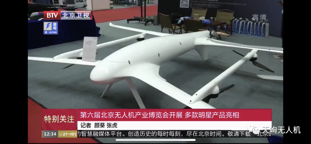 会上,天峋无人机流线型的气动造型和大荷载长航时特性吸引了业内外众多人士驻足参观,并登上了北京卫视新闻。