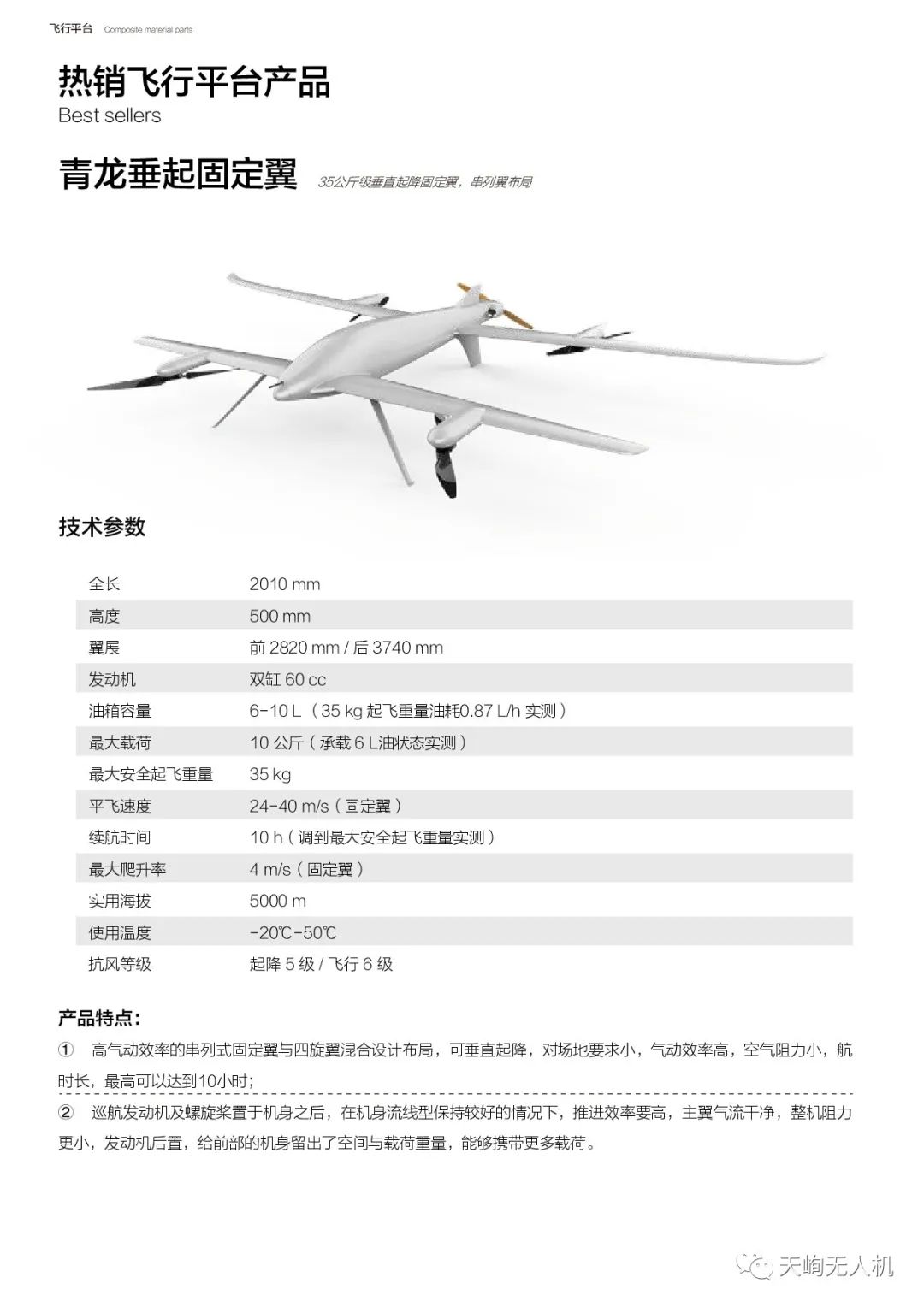 大荷载机舱(青龙35kg起飞重量 10kg载重,8h飞行时长)
