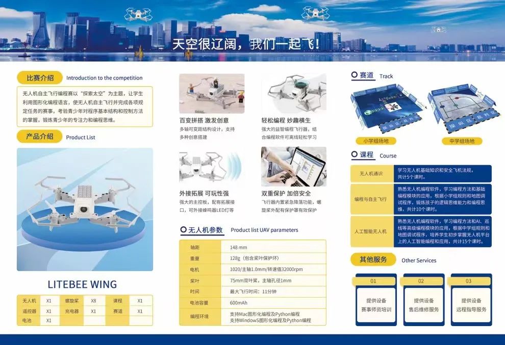 2.软件要求:图形化编程软件,具备飞行移动、灯光控制、巡线、人工智能应用等命令模块。