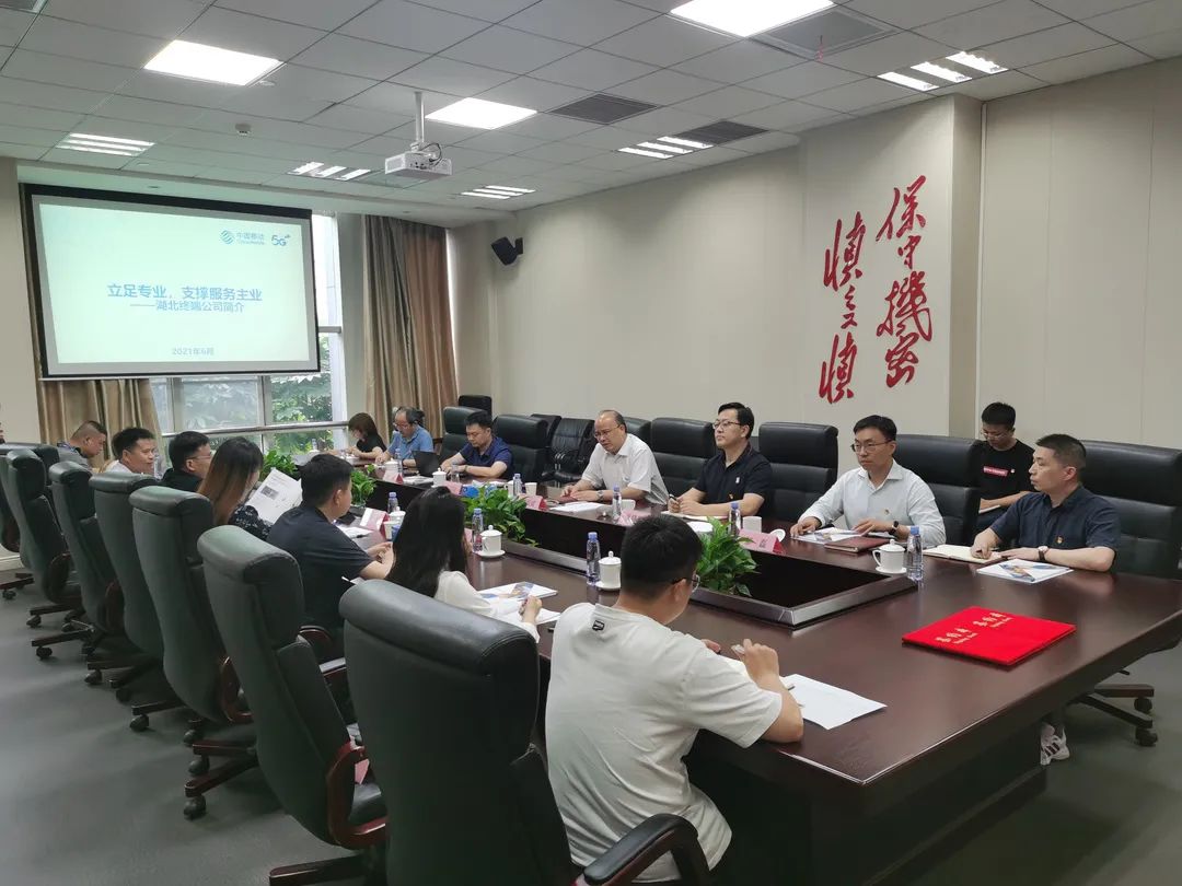 会议上终端湖北公司党总支书记、总经理胡国斌及高德红外党办主任余小小就双方党务情况进行交流。