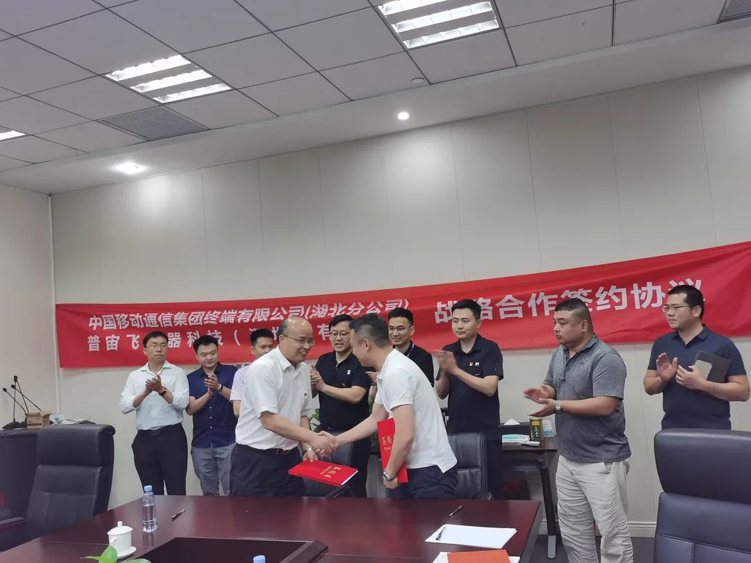 通过本次思想交流,中国移动通信集团终端有限公司(湖北分公司)与我司达成了一致战略合作意向,并由终端湖北公司党总支书记、总经理胡国斌,普宙飞行器科技(深圳)有限公司总经理余泽轩,共同签订战略合作协议,本次签约仪式及思想交流会议圆满成功。