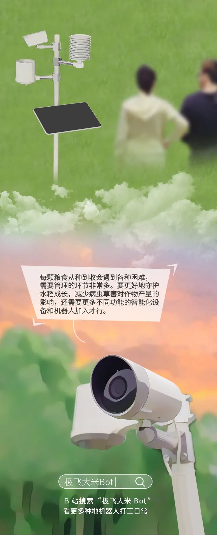 极飞的愿景是,构建一个满足人类未来 100 年发展需求的农业生态系统,让全世界的人们都能获得充足、丰富和安全的食物。成立 14 年来,极飞自主研发了农业无人机、农业无人车、农机自驾仪、农业物联网和智慧农业管理系统等产品。通过构建完善的渠道体系,为农户提供智能、高效、经济的生产工具和数据服务;帮助农场解决劳动力成本高、生产管理粗放等问题。