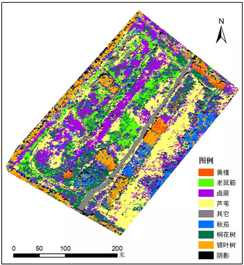 2020年,大疆与中山大学合作,对珠海市淇澳岛的红树林湿地进行分类普查。这是珠海市面积最大、保存最完整、最集中连片的林分。该项目使用大疆精灵 4 多光谱版无人机,帮助生成GNDVI、LCI、NDRE、NDVI等多种植被指数。获得的多光谱正射影像地面分辨率能到4CM,为影像的精细分割提供了基础。专家团队根据地块的属性,确认了分类的原则和9类地物样本,随后采用随机森林分类算法执行分类过程,得到最终分类结果,整体精度达到了92.4%。