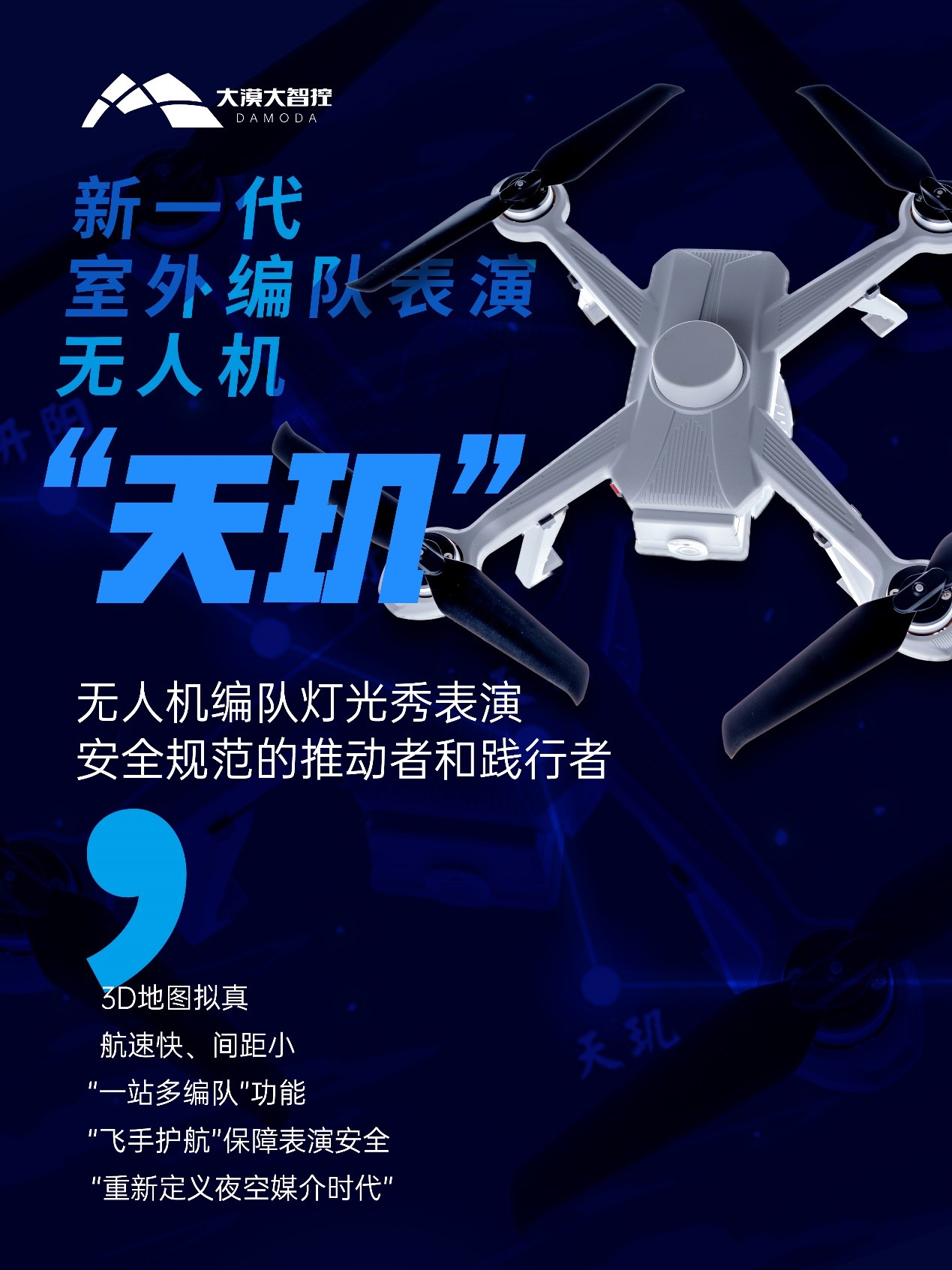 “天玑”是大漠大坚持自主研发生产的标准化产品结晶,从研发、设计、生产到项目执行,都由大漠大团队完全自主研发并精心锻造。2021年,“天玑”产品的诞生给所有合作伙伴带来了更多的合作空间和发展机遇,标志大漠大将会更精心服务客户,覆盖更广范围,呈现更无界、更恢弘、更艺术的无人机编队灯光表演。