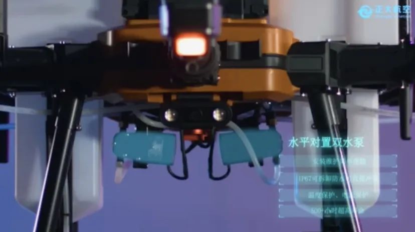 水泵搭配IP67防护等级可直接冲洗可拆卸防水,可用500小时+,是普通水泵寿命的3-5倍。使用F60无人机时无需担心水泵损坏频繁更换耽误作业,减轻售后成本