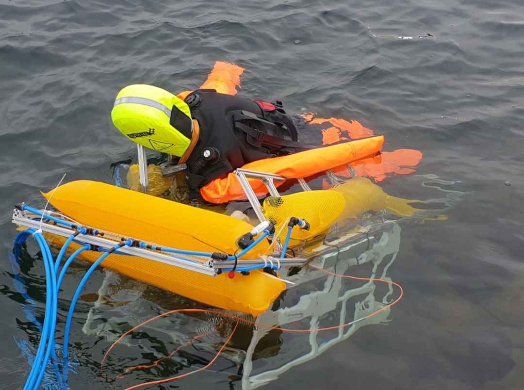 在哈勒的胡飞森湖进行的测试中,机器人成功地找到了一个80公斤的假人,该假人被淹没在3米深处。随后,机器人将其固定在顶部,浮出水面,然后将假人运送到40米的岸上。所有这些都在大约两分钟内完成。
