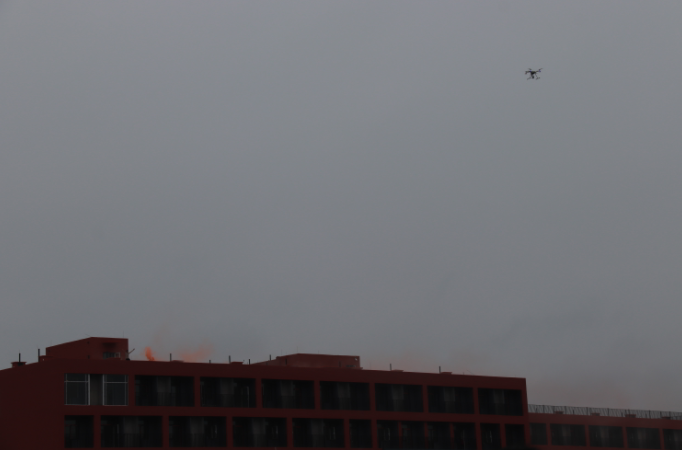 “请现场人员撤离!请现场人员撤离!”Falcon无人机到达现场后立即对火场展开侦查,并用喊话器现场实时喊话,告知现场及周边工人撤离事发地点。通过现场侦查,发现有一名工人没有安全撤出,被困楼顶等待救援。随即,Falcon无人机将侦查情况实时回传,为专项指挥部做出科学决策提供依据。