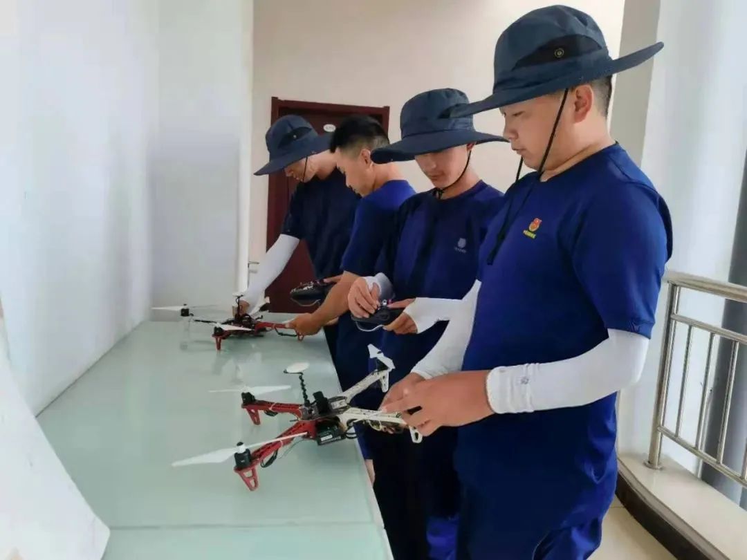 目前,培训工作采取无人机基础理论学习与基础实操、实飞相结合,穿插低空双光侦查,现场全景、二维、三维制图,机载喊话引导,机载辅助照明,无人机图传等科目进行。