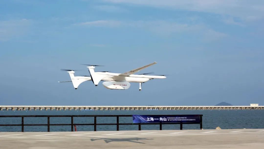 近日,峰飞航空科技自主研发的eVTOL(Electric Vertical Take-off and Landing,电动垂直起降)无人驾驶飞行器从上海出发,跨海直飞到舟山,装载梭子蟹、大黄鱼等舟山标志性海鲜特产,再从舟山返程飞回上海,往返总航程近200公里,单程近100公里,单程用时仅为一小时!