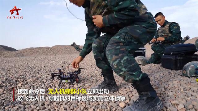 今年年初,东部战区陆军某旅组织的一场新年度训练。其中,察打一体无人车、无人机“蜂群”多款新型无人装备亮相演兵场,演习一开始,释放出地面机器人的同时,多架小型无人机也升空组成无人机“蜂群”,形成了立体侦察编组,对预定作战区域展开了全方位、无死角的空中侦察。