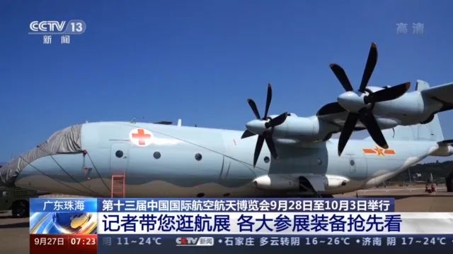 总台央视记者 崔霞:这架飞机是运-9医疗救护机,后面有一个迷彩的帐篷,也可以说是把野战医院搬到了航展的现场。