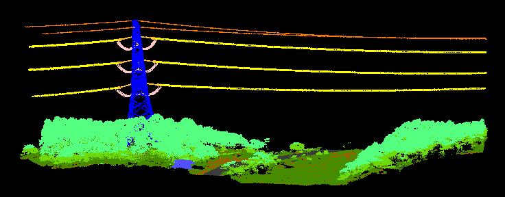 另一方面,智能化电力巡检方式也深度融入到内业数据处理过程中。以某地架空输电线路通道巡线为例,内业人员对点云分类时只需设置杆塔最大宽度和杆塔半径等分类参数,就可将地面、导线、杆塔、引流线、绝缘子、交跨线、噪声等数据正确分类,正确率可达90%以上,大大减少了人工分类作业量,保证了线路巡检报告的时效性。其次利用外业采集的点云和可见光数据输出DEM和DOM成果,结合分类后点云数据和隐患分析数据集成到三维管理平台,建立线路信息化台账,实现线路可视化管理。