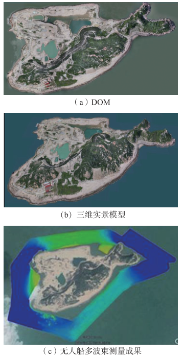 2018年9月,利用该技术对位于广东省珠海市东部海域的三角岛进行了实地测量。三角岛位于万山群岛西北部,岸线总长度约4.9km,投影面积约0.87km2,自然形态表面积约0.96km2,岛体呈东西走向,长约1.6km,宽约1km,最窄处宽约200m。
