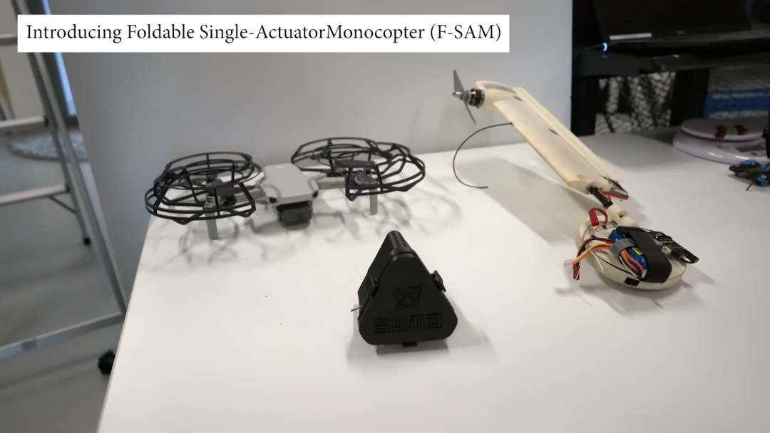 F-SAM由新加坡科技设计大学开发,代表着可折叠单执行器单翼飞行器。正如其名称所示,该无人机可以折叠,很像一个瑞士卷,它只使用一个执行器进行控制。
