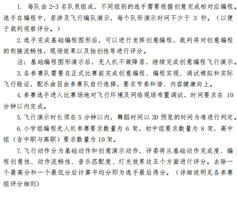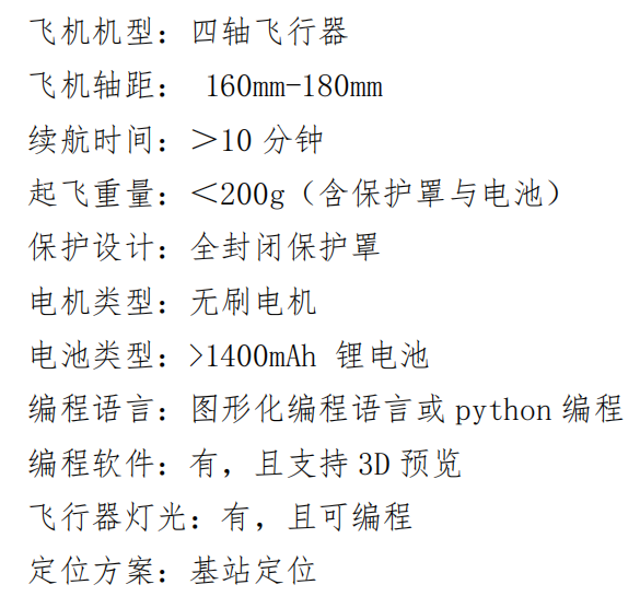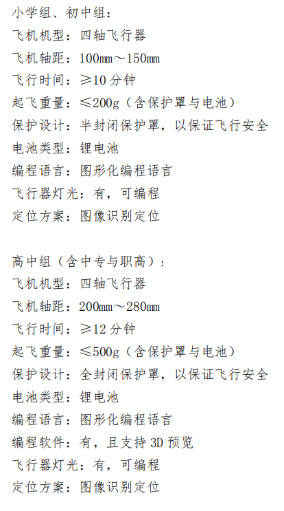 Folk教育编程无人机符合全国青少年无人机大赛中的“旋翼赛编程挑战赛(附件10)”的赛具要求;
