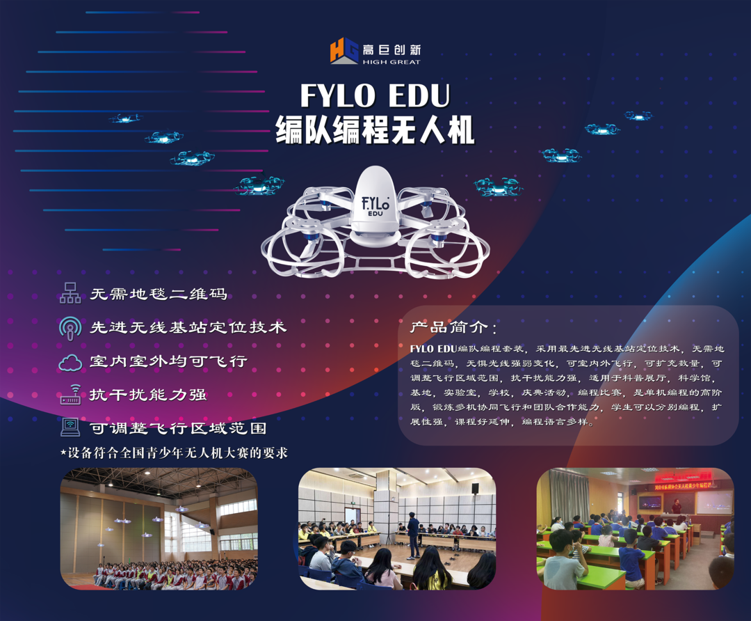 Fylo EDU教育编程无人机编队符合全国青少年无人机大赛中的“旋翼赛创意图形编程赛竞赛(附件11)”的赛具要求;